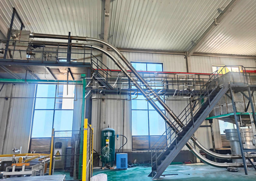 河北不锈钢管链输送机 钛白粉管链式输送设备现场